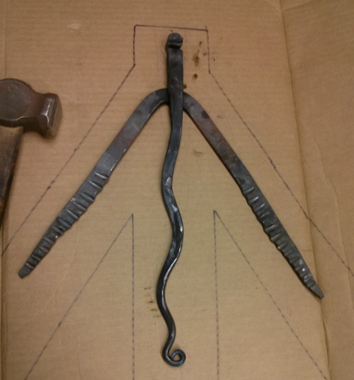 The forged wing bracket was made out of some flat-bar stock which was tapered out, and 'feathers' were added to the wings.