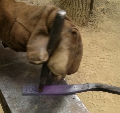 Here's an image of the tail of our dragon being forged. Some bar stock was tapered and lengthened on the anvil, and then given the wavy tail shape.