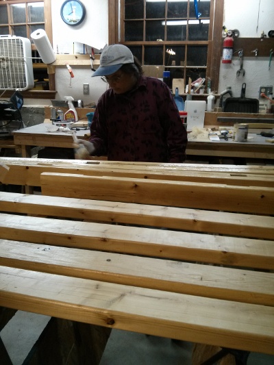 We added a plywood floor to keep the weights from sliding around, and then buffed the dragons until they shined! Here my other neighbor Alex helps out with the wire-wheel cleaning up the metal.