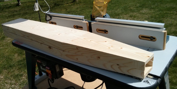 The second is 2 2x6 sections with the centers routed out to fit the laminated furring strips as tightly as possible. The 2x6 pieces add strength between the fulcrum and counterweight.