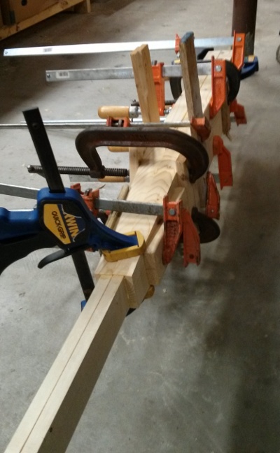 The arm is made of two elements. The first is two furring strips that were run through a jointer, and laminated together. This created a long and relatively strong beam that is very light.