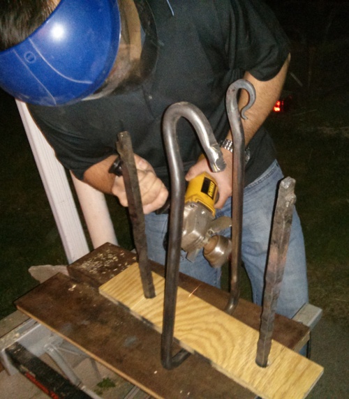 Naturally, the head and tail did not line up. This was expected due to the nature of what we were working with, and our amateur blacksmith status. We made custom hanger loops for each side to make it