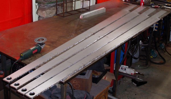 Here are the stays before they are welded on. The stays will go on the back of the arm, and reduce forward deflection as the arms