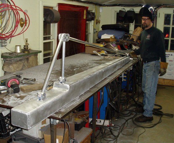 Here is an aluminum post welded half way out. This post is to prevent the new arm stop rope from riding up the length of the arm