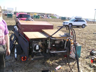 In 2005, we started using an auxiliary trailer to haul our power units onto the field. This saved lots of grunting and lifting of these heavy items as we could just leave them on the trailer. It also helps keep our pit tidy.