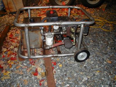 Our hydraulic power unit was designed and built by Jeff. The engine is off an old snowblower, and has a handy electric start.