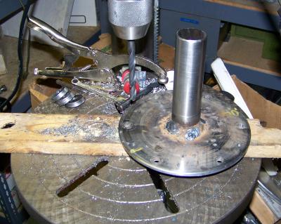 We measured up the flywheel interface on the diesel engine, and Jeff fabricated an adapter shaft so we could attach our welding head to it.