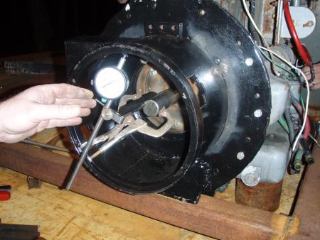 Once the adapter shaft was bolted onto the flywheel, the bell housing for the welder/generator head was fitted to an adapter plate, and then to the