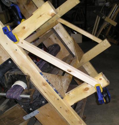 The lift-kit frame proved to be a bit on the wobbly side, so I added braces to the outer legs.