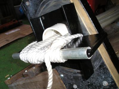 of the bend in the rope, and thus extends rope life. This is made from conduit, which I split open with a