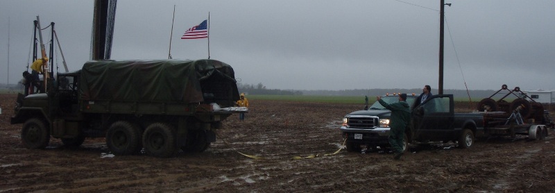Naturally, Mr. B got stuck in a giant mud hole on the way into our site. Fortunately, the friendly folks from Team Gaul Buster used their turbo-diesel 10 wheel monster truck to pull us into place.