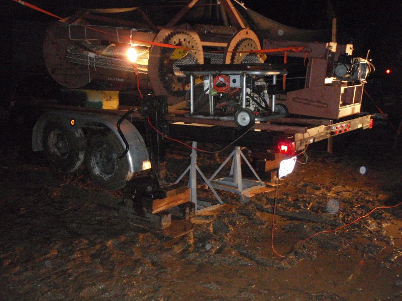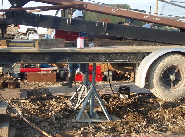 Another of our improvements for the year was to use the new jack stands not only for deploying our cribbing for a raised machine, but they also support the center of Mr. B. Last year using the dump-frame caused the trailer frame to bow in an unpleasant way. Adding these stands made everything much more stable.