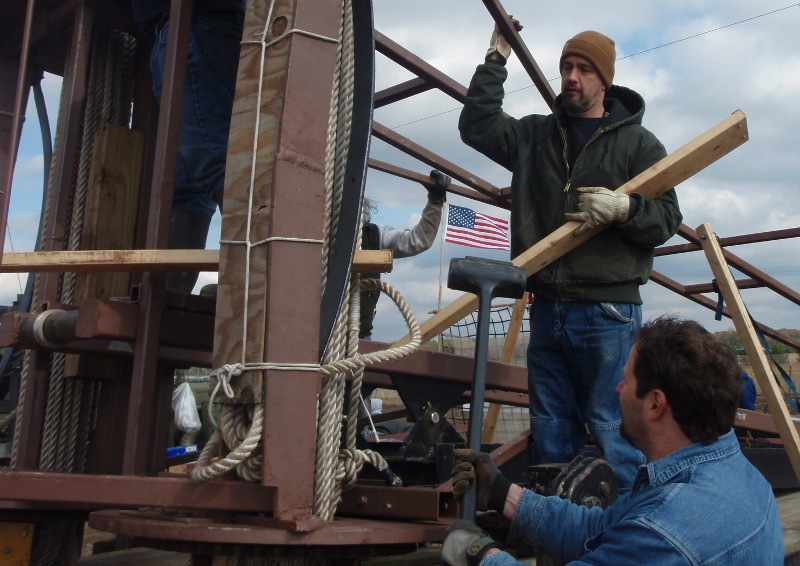 Eric and Dave worked late into the evening on Friday fixing the broken bowstring to get ready for Saturday.