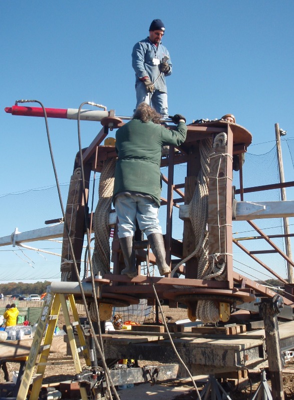Mista Ballista returned to Delaware for the 2010 Punkin Chunk. After our success with pretensioning bundles Last Year, we reused the same pretensioning system but did double-pulls for every strand, getting closer to 1000lbs tension per strand.