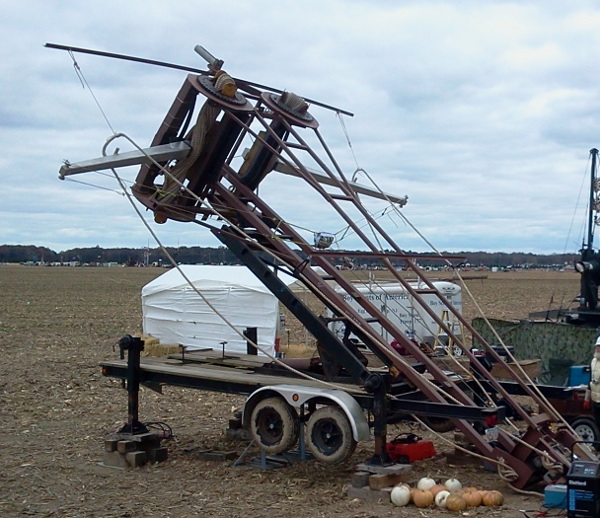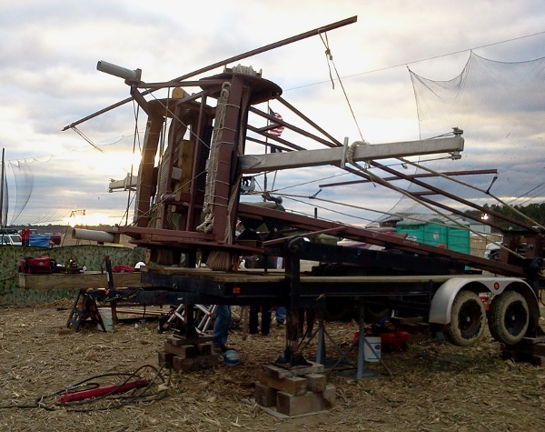 Our Pumpkin Throwing ballista travels down the road with the rope bundles lying in the middle of the trailer. In this video taken by Jr team member Trevor sh...