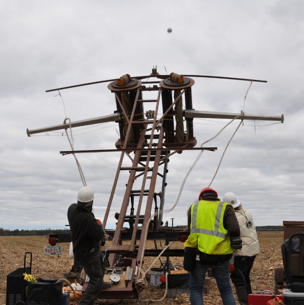 Mista Ballista returned to Delaware for the 2012 Punkin Chunk. After our big success with bundle pre-tensioning last year allowing us to break the 1000ft mark, we opted to leave good things alone, and instead focus on torquing up the bundles to the max, and compounding the machine to see what it could do!